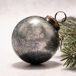 A Large Individually hand-blown coloured Crackle glass ball, measuring approximately 8cm in size. Each bauble has an ornately detailed bronze cap and co-ordinating coloured organza tie.