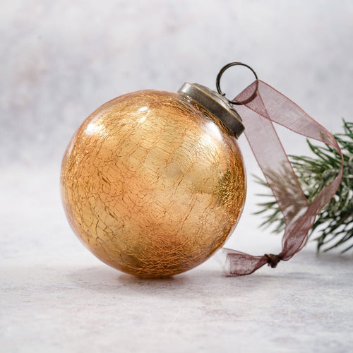 3" Honey Crackle Glass Christmas Bauble