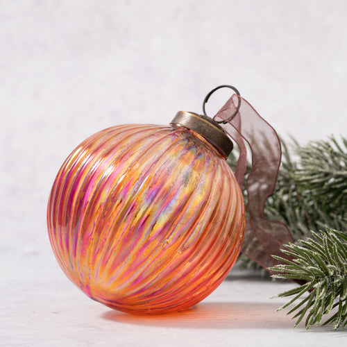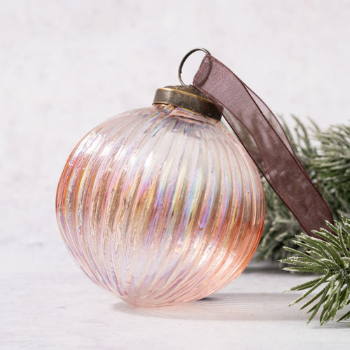 3" Peach Crackle Glass Christmas Bauble
