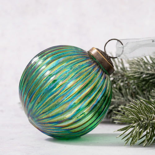 3" Large Emerald Rainbow Ribbed Ball