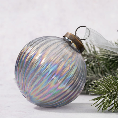 3" Large Silver Rainbow Ribbed Ball