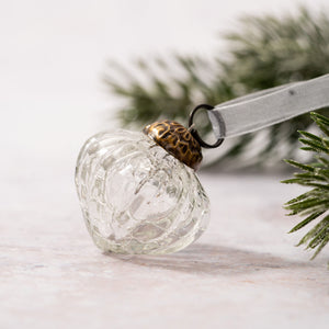 Each bauble is finished with a crackle glaze, which gives a 'cracked' appearance.