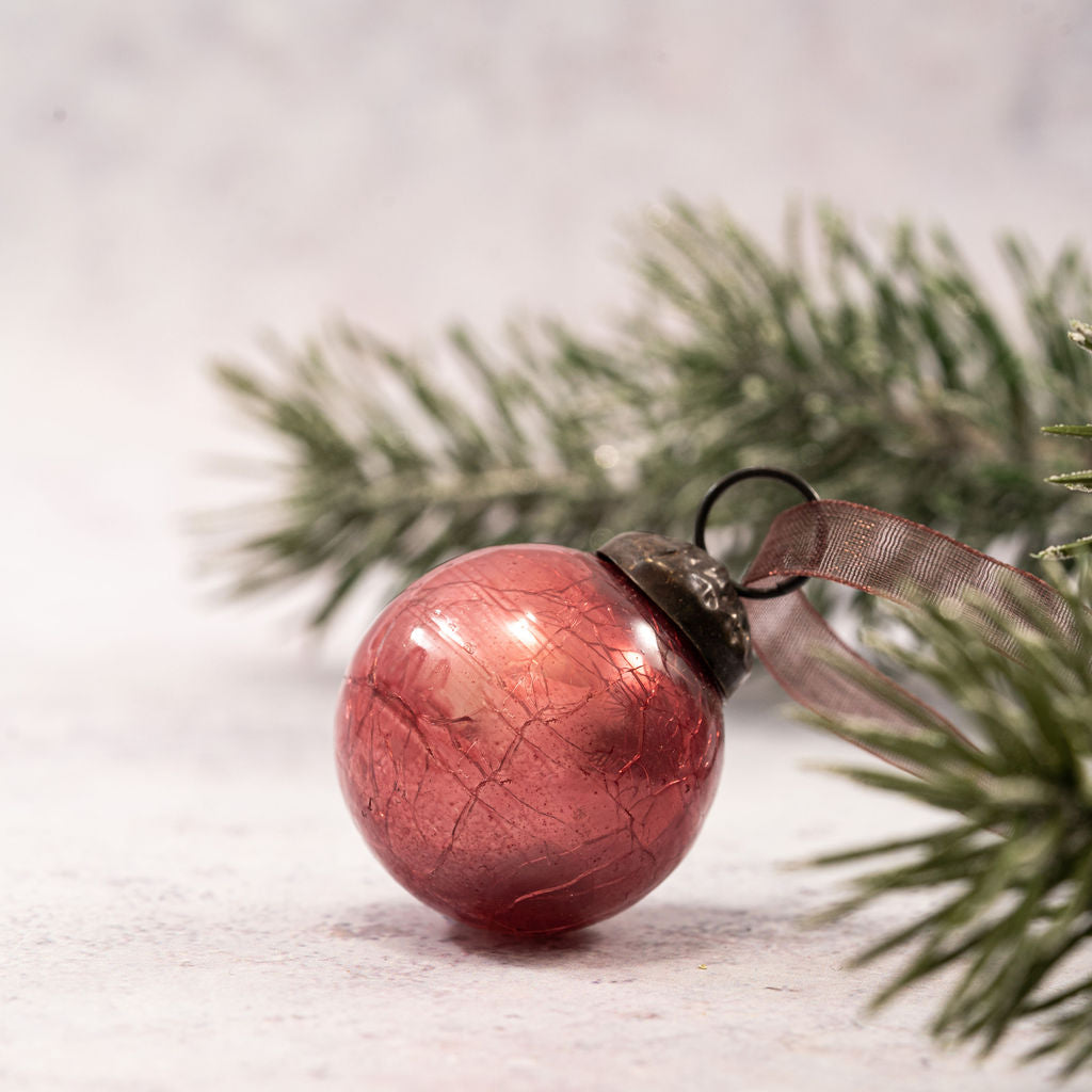 Set of 6 Small 1" Mauve Crackle Glass Baubles