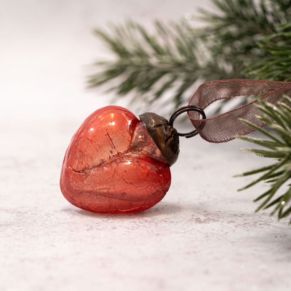 Set of 6 Small 1" Peach Crackle Glass Hearts