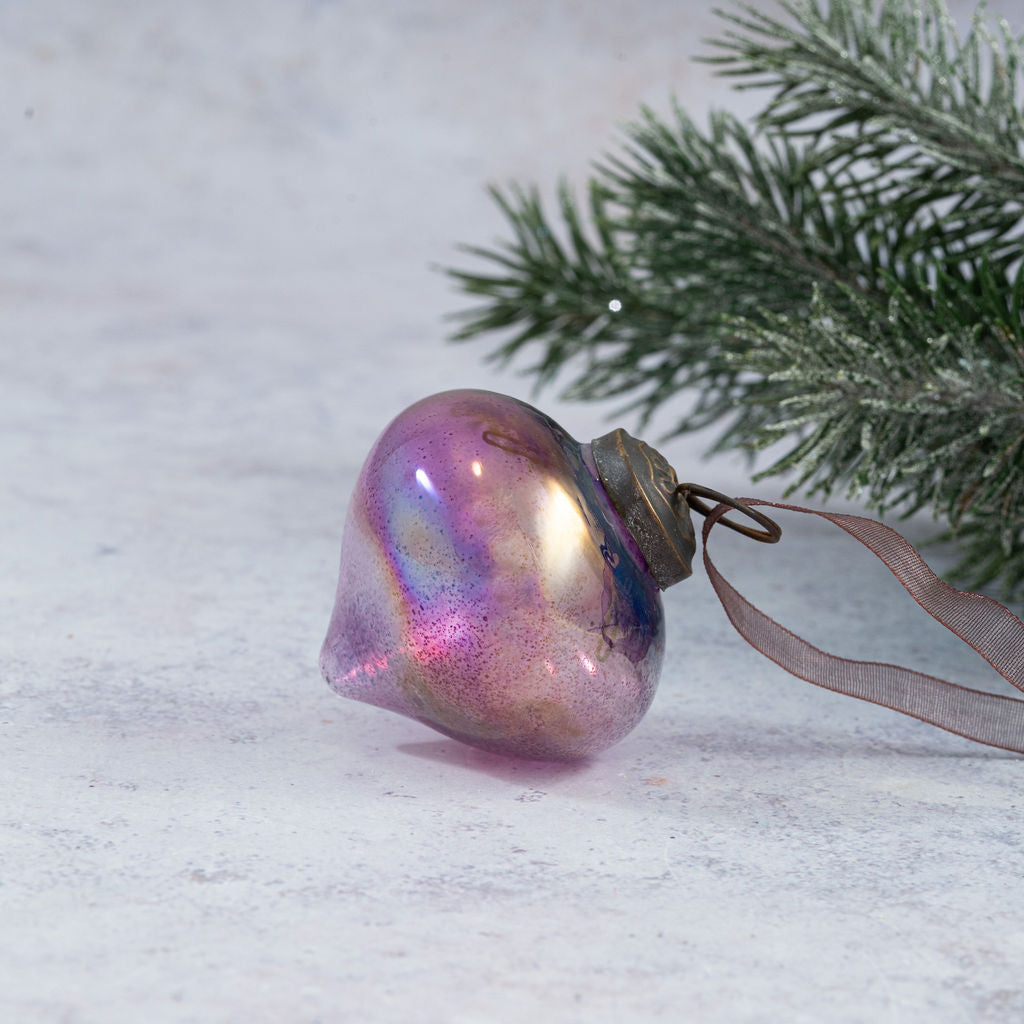A medium sized hand blown glass bauble, measuring approximately 5cm in diameter.