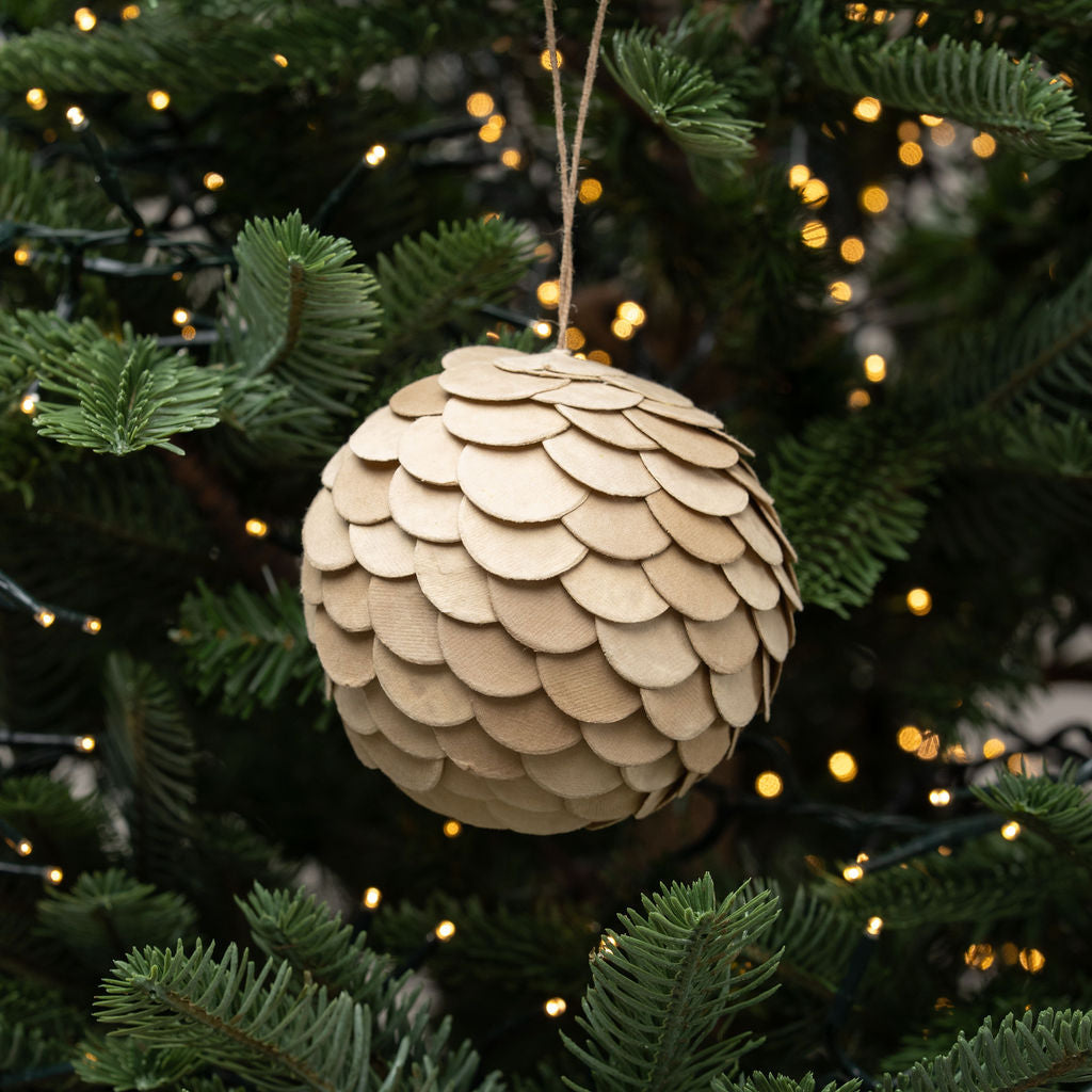 Expertly handmade by artisans in India using traditional techniques, this bauble brings warmth and organic style to festive displays. Its minimalist design makes it a perfect addition to Scandi-inspired Christmas décor, natural-themed trees, or neutral holiday colour schemes.
