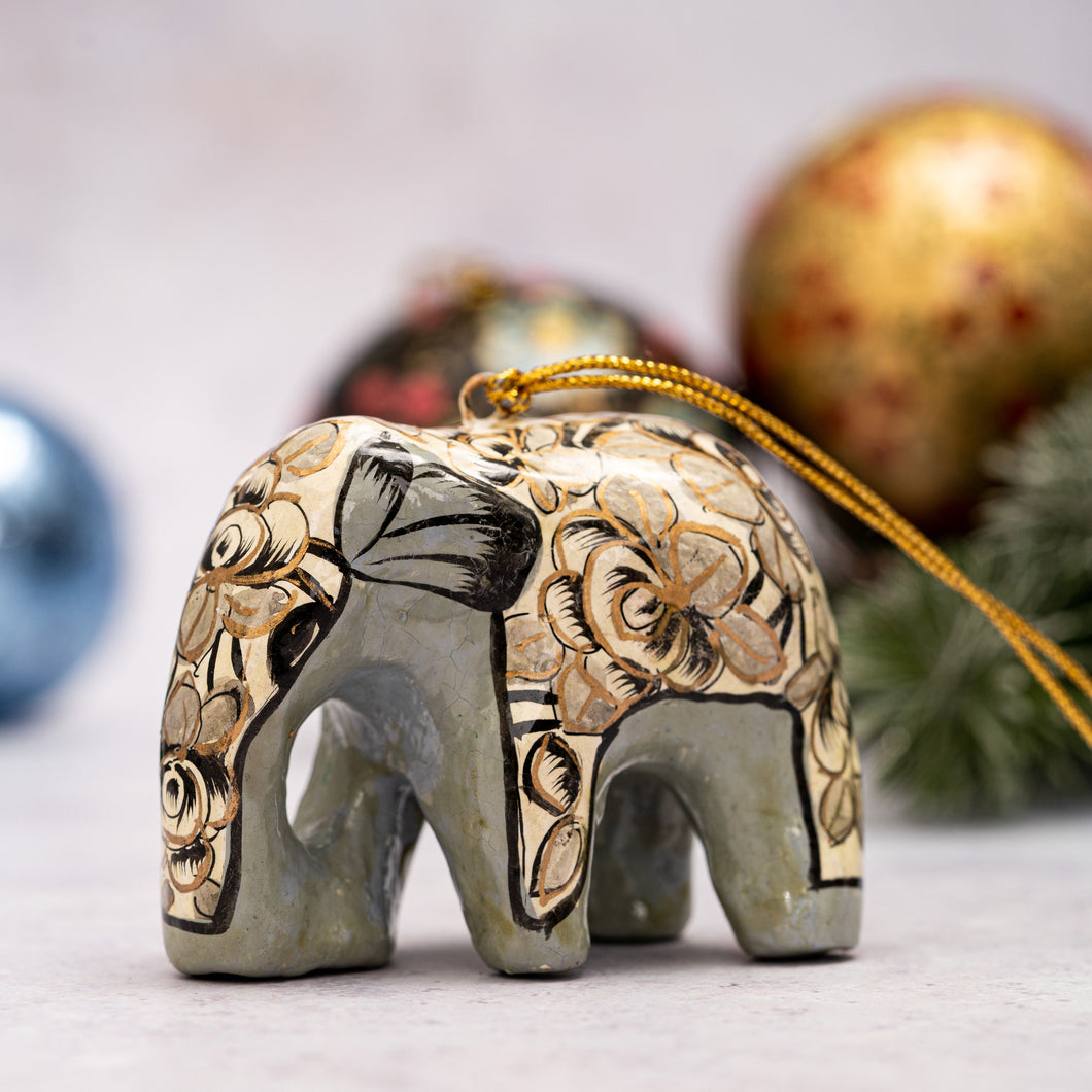A hand painted 3D elephant measuring approximately 7cm by 4cm.