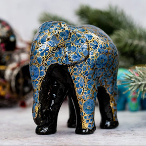 A hand painted paper mache giant 3D elephant measuring approximately 12cm by 13cm.