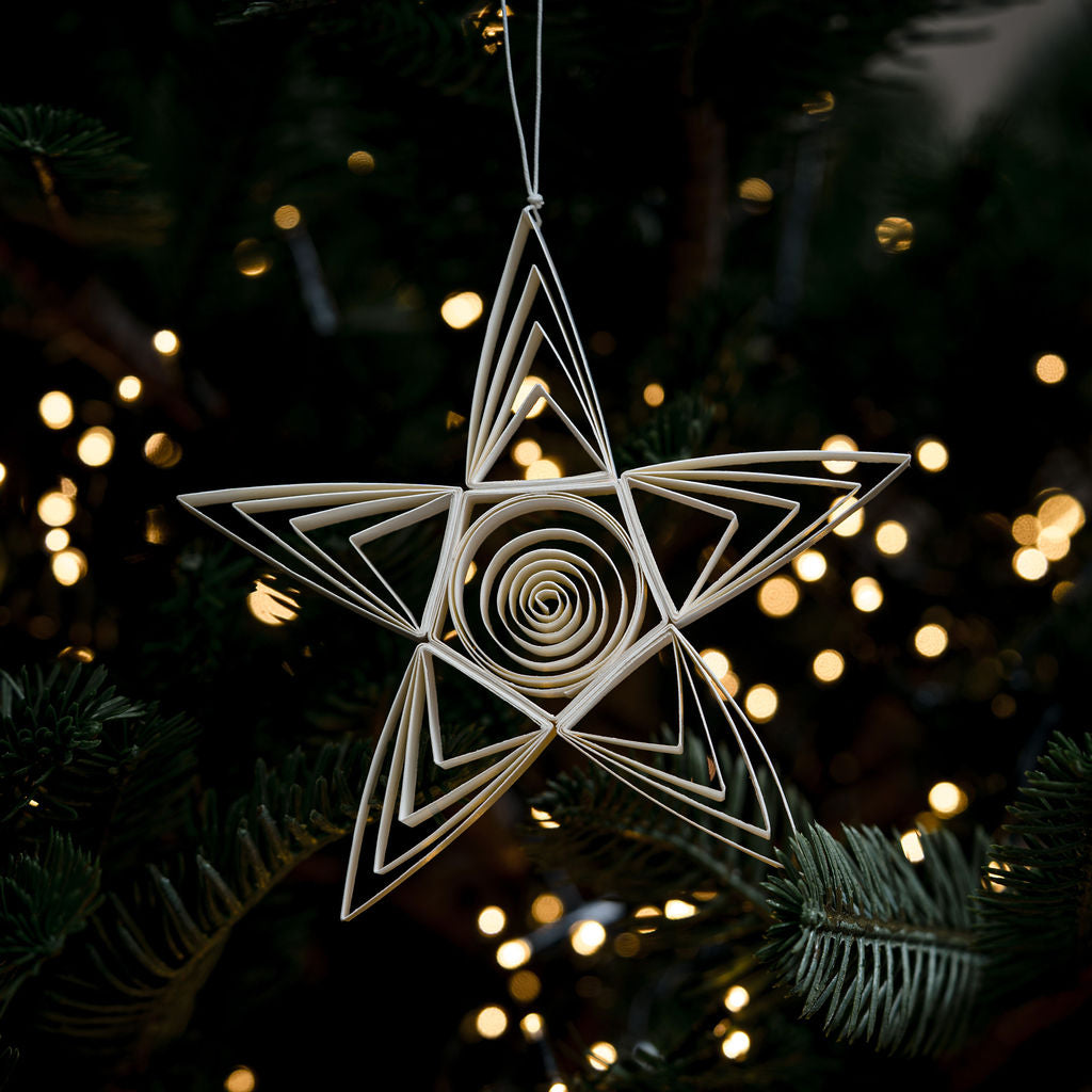 This beautiful hand-crafted quilled decoration, is made from white paper, hand-crafted into a pretty star design. It hangs from a delicate white string, and measures approximately 13cm in diameter.