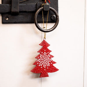 This beautiful, handcrafted, hand-painted, flat wooden hanging Christmas tree decoration measures 10cm by 8cm! Perfect for adding a special touch to your Christmas Cards, it also looks exquisite as a place setting on your Christmas table - a fantastic keepsake for years to come!