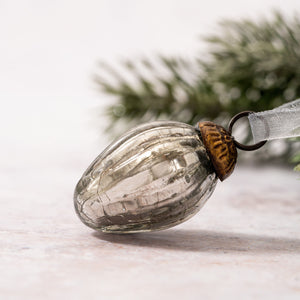 A Set of 6, small, individually hand-blown crackle effect Pinecones, each measuring approximately 4cm with an ornately detailed bronze cap and co-ordinating coloured organza tie.