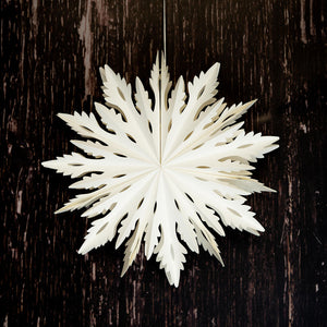 This stunning giant snowflake paper decoration, is machine cut, and made from a heavy duty white paper, before being assembled by hand.